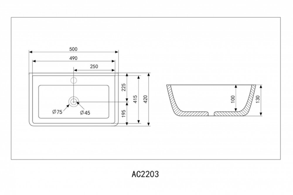 Раковина Abber Rechteck AC2203MSB, 50 х 40 см, накладная, синяя матовая
