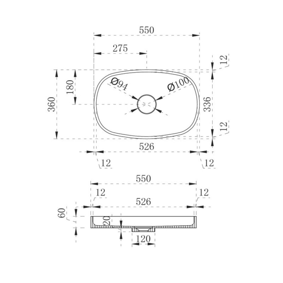 Раковина Abber Stein AS2601, 55 х 36 см, накладная, белая