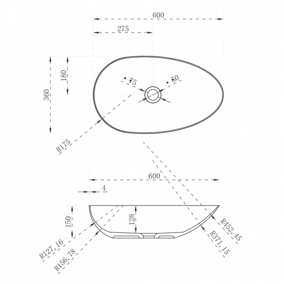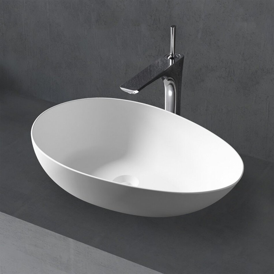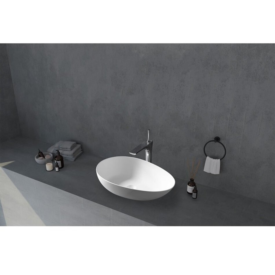 Раковина Abber Stein AS2615, 60 см, с донным клапаном, искусственный камень, цвет белый матовый