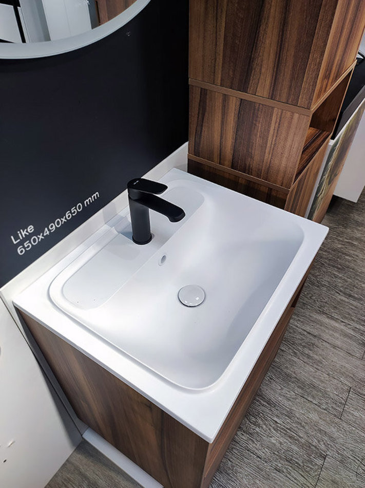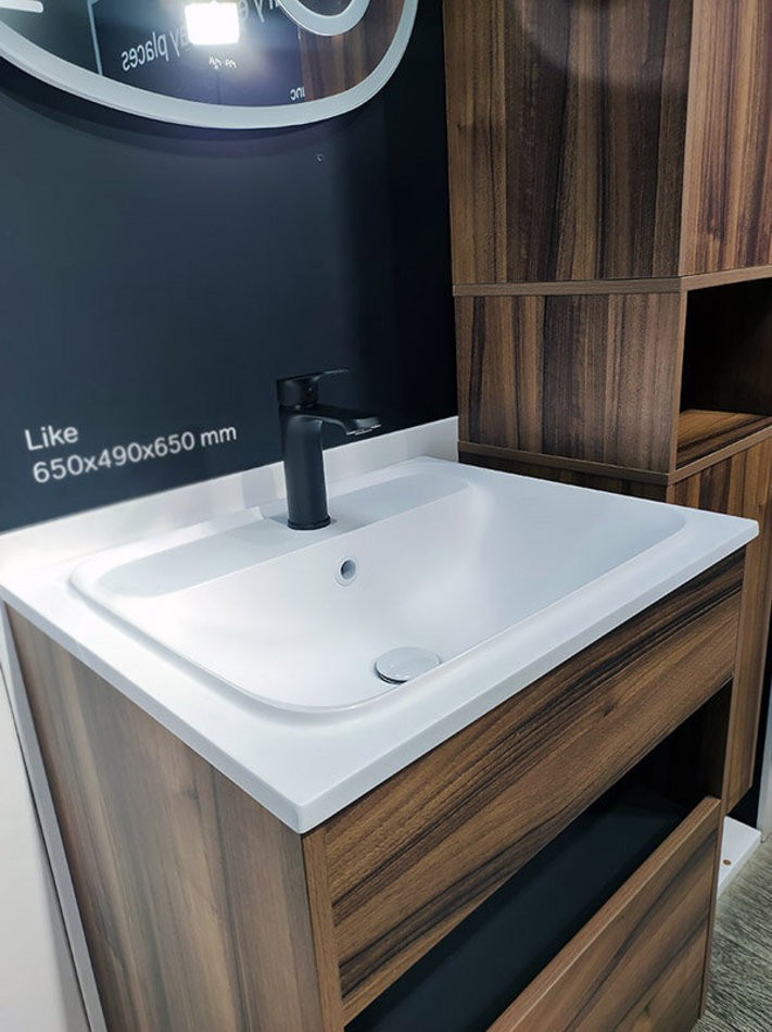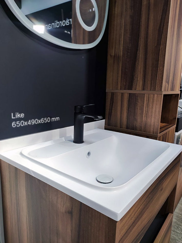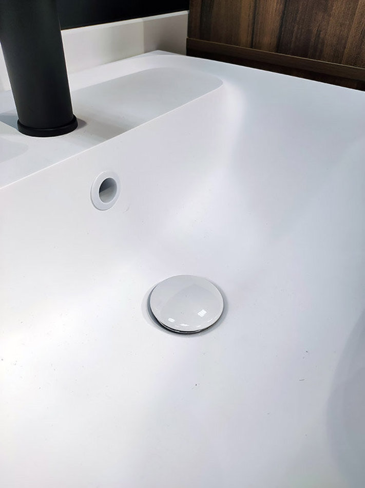 Коллекция модульной мебели Func отличается своей функциональностью вариативностью и мобильностью. Наши инженеры продумали и учли каждую деталь чтобы сделать взаимодействие с продуктами максимально простым и комфортным для всех членов семьи. Уникальная раковина интегрированная со столешницей. Дизайн разработки Design3 (Германия). Раковины выполнена из литьевого мрамора. Матовая поверхность раковины придает интерьеру ощущение уюта и комфорта. Бортик по контуру чаши и база под смеситель в виде острова - защищают от пролива воды