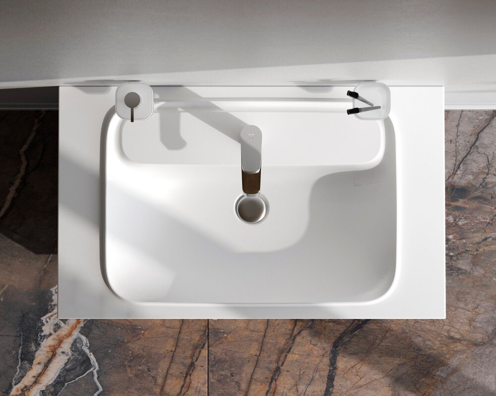 Коллекция модульной мебели Func отличается своей функциональностью вариативностью и мобильностью. Наши инженеры продумали и учли каждую деталь чтобы сделать взаимодействие с продуктами максимально простым и комфортным для всех членов семьи. Уникальная раковина интегрированная со столешницей. Дизайн разработки Design3 (Германия). Раковины выполнена из литьевого мрамора. Матовая поверхность раковины придает интерьеру ощущение уюта и комфорта. Бортик по контуру чаши и база под смеситель в виде острова - защищают от пролива воды.