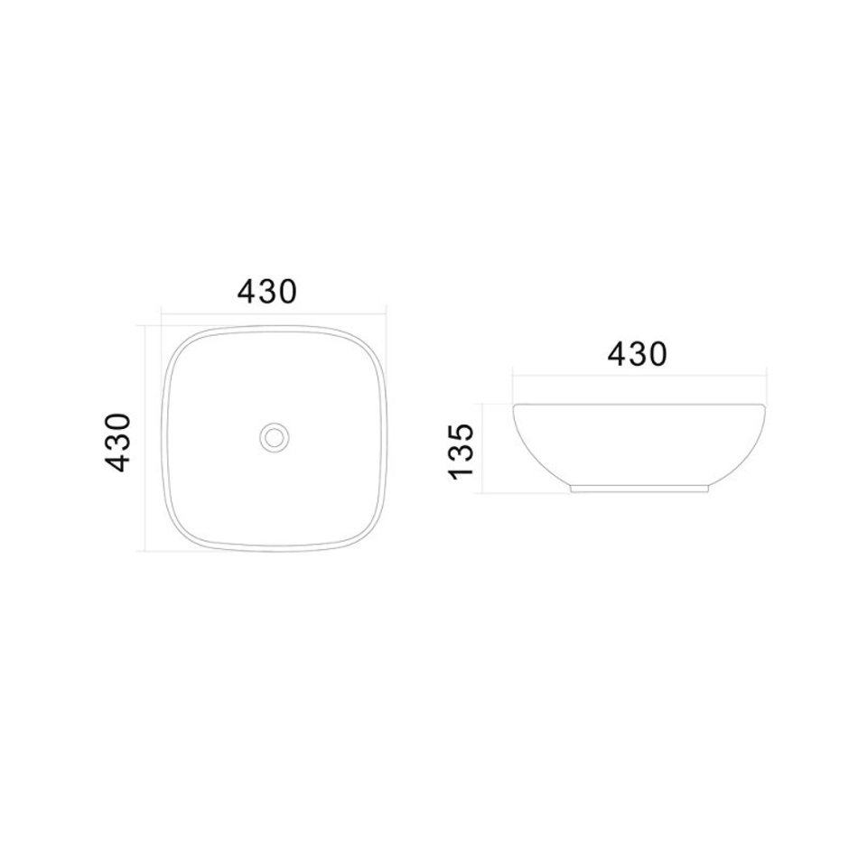 Раковина Am.Pm Universal C8FC0X043GWSQ, 43 см, накладная, фарфор, белый глянцевый