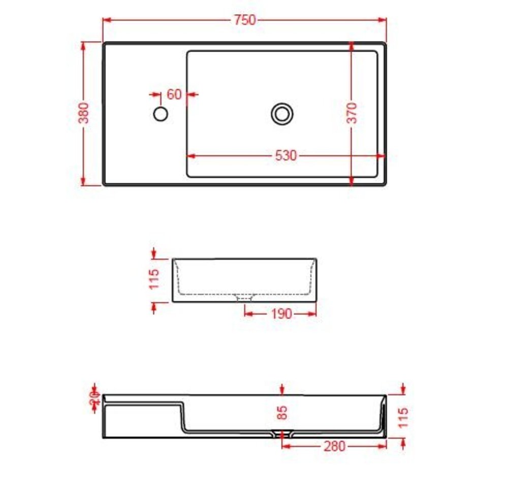 Раковина ArtCeram Scalino 75 SCL004 01 00, накладная, цвет белый глянцевый, 75 х 38 х 11,5 см