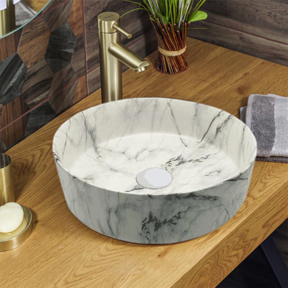 Раковина Azario 35.5 см накладная, без перелива, мрамор матовый, AZ-3134-ST