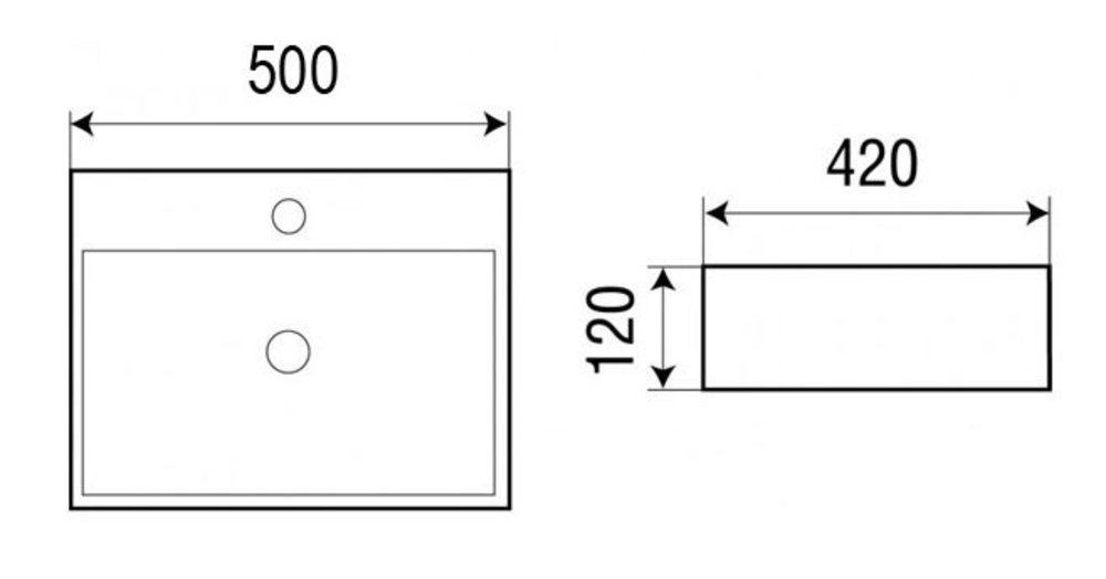 Раковина Azario 50 см накладная, с переливом, 1 отверстие, белый глянцевый, AZ-2173-S