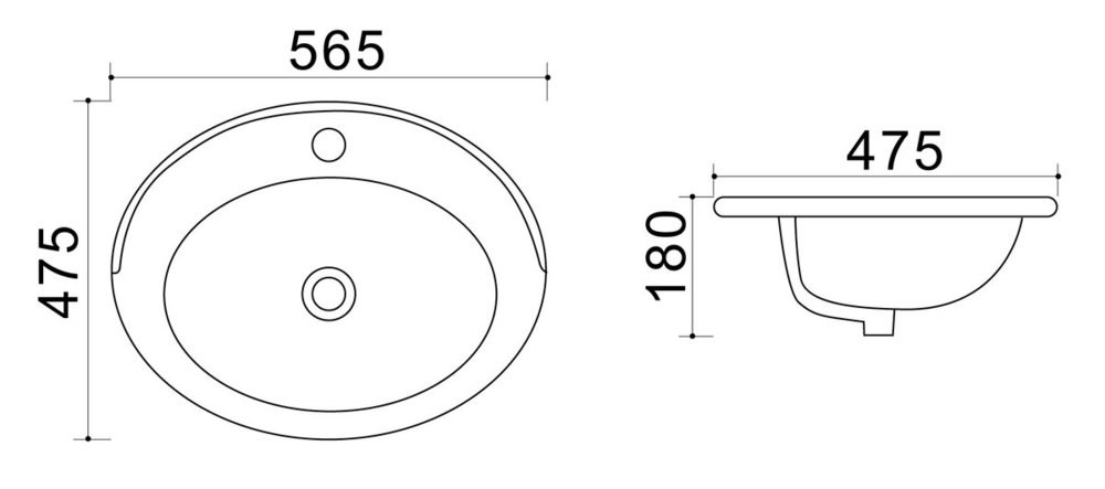 Раковина Azario 56.5 см без перелива, 1 отверстие, белый, AZ-404