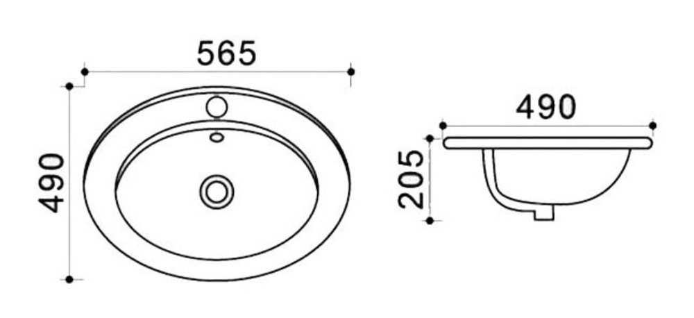 Раковина Azario 56.5 см с переливом, 1 отверстие, белый, AZ-T808