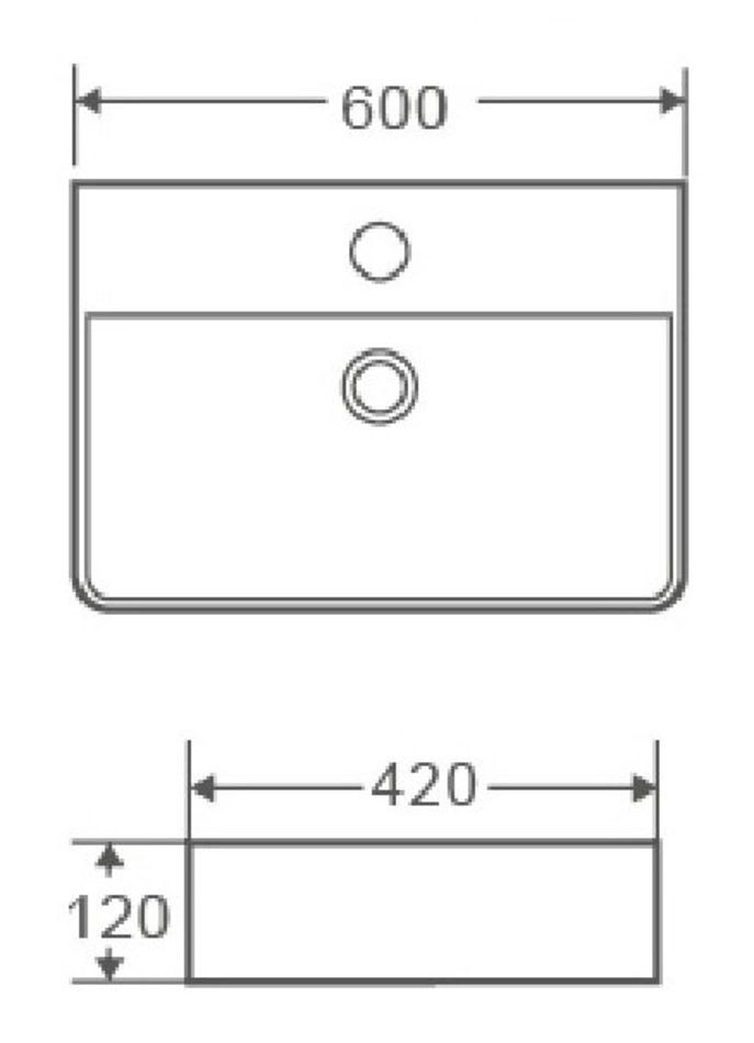 Раковина Azario 60 см накладная, с переливом, 1 отверстие, белый, AZ-2173