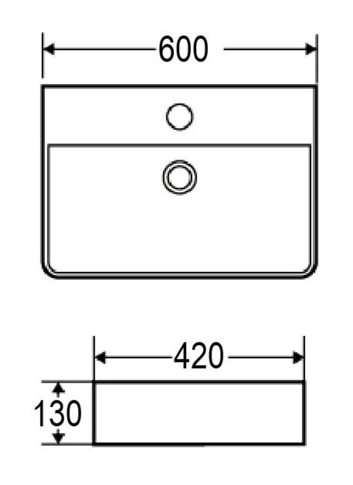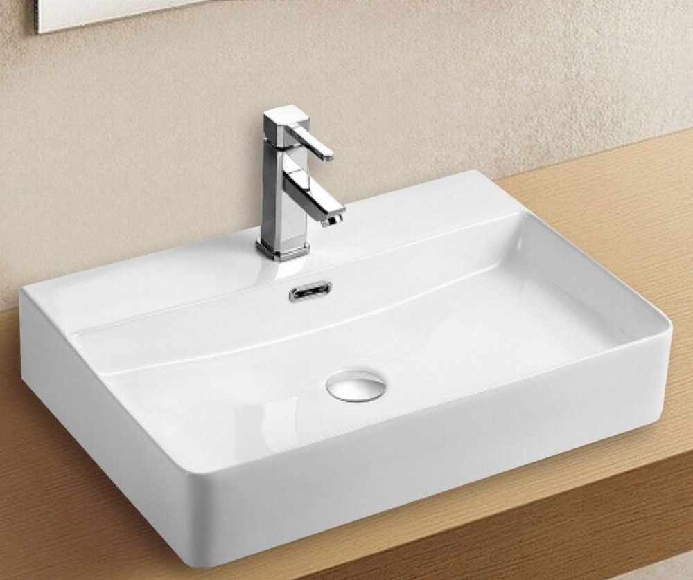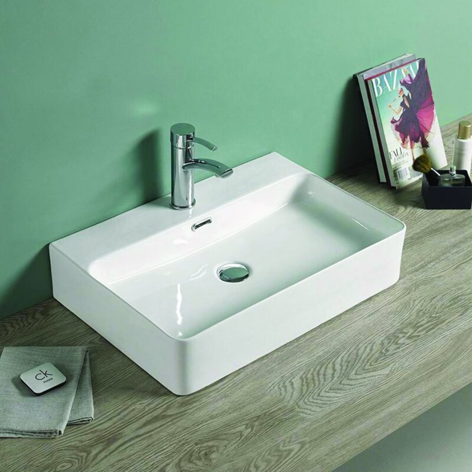 Раковина Azario 60 см накладная, с переливом, 1 отверстие, белый, AZ-2173SP