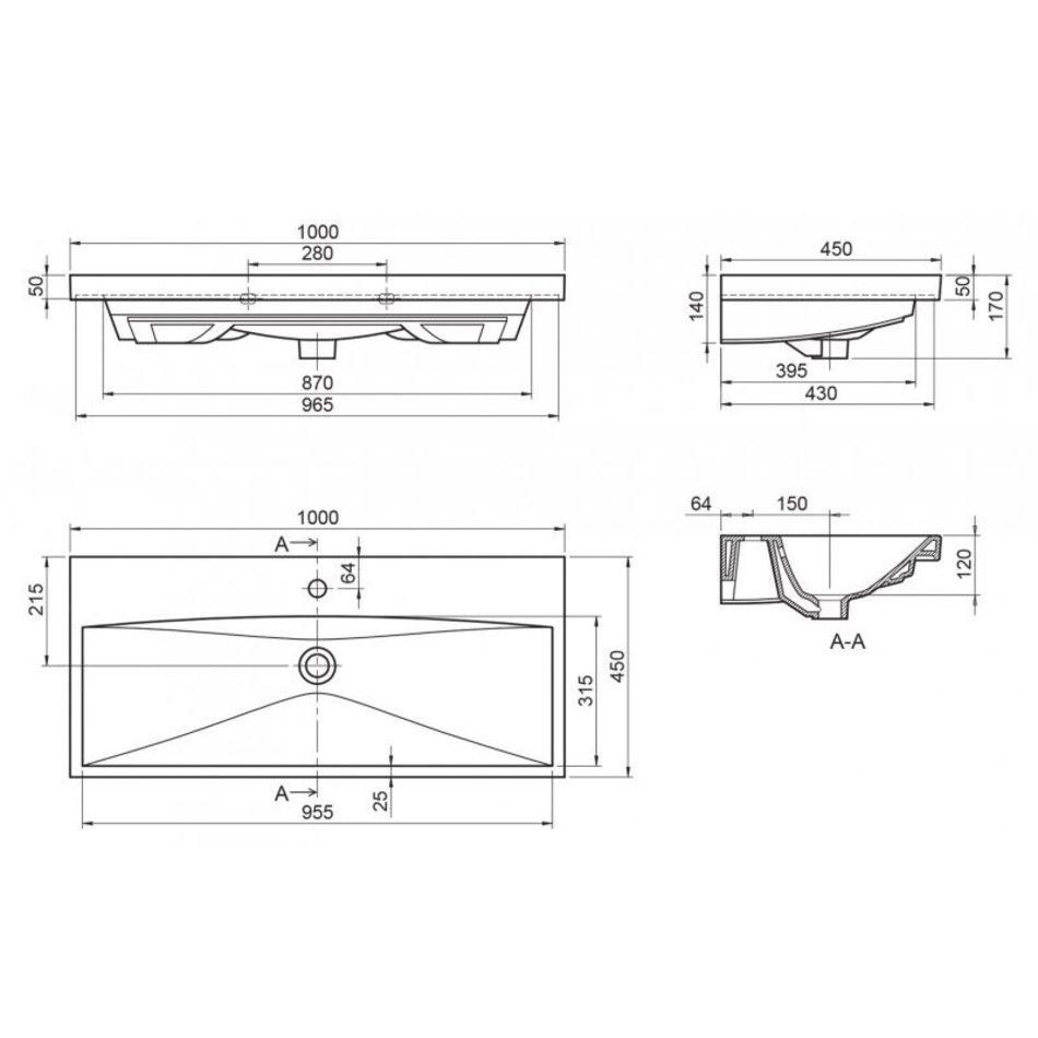 Раковина BelBagno 100 см, керамика, белая, BB-0324-100-LVB