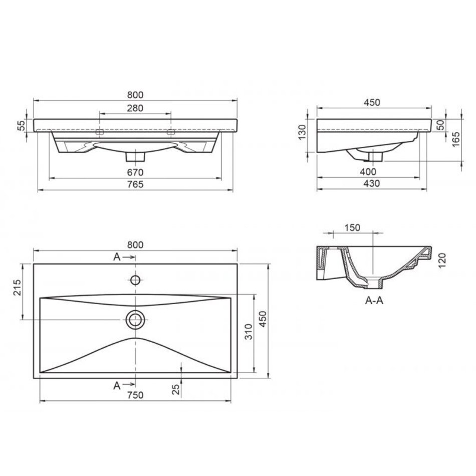 Раковина BelBagno 80 см, керамика, белая, BB-0322-80-LVB