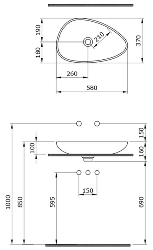 - Без отверстия под смеситель