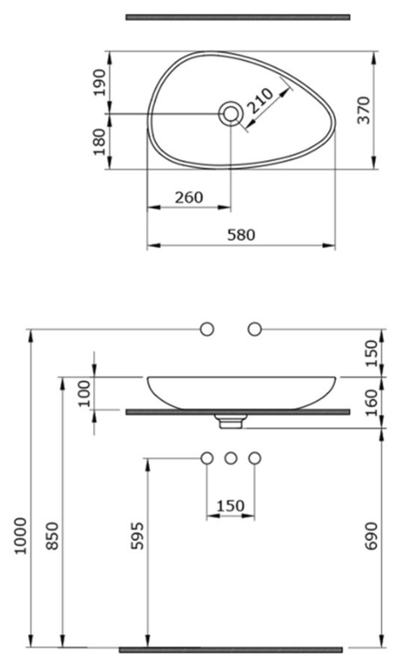 Раковина Bocchi Etna 1114-029-0125, 58 см, фарфор, светло-голубая