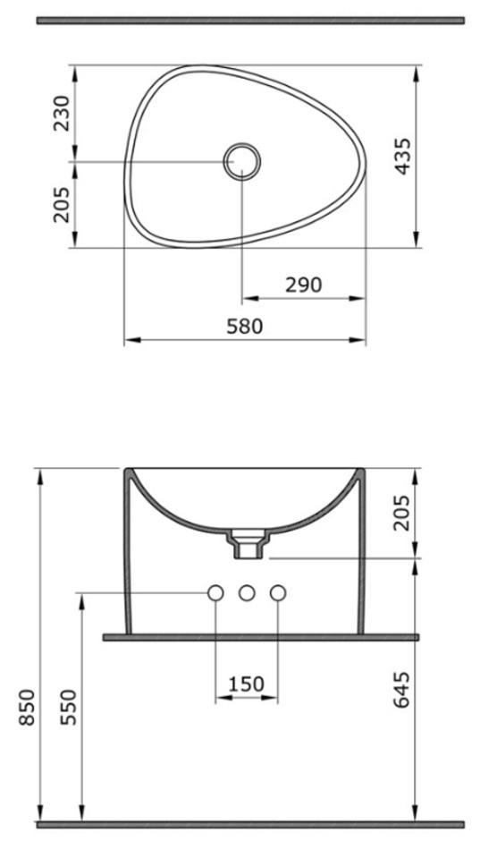 - Без отверстия под смеситель
