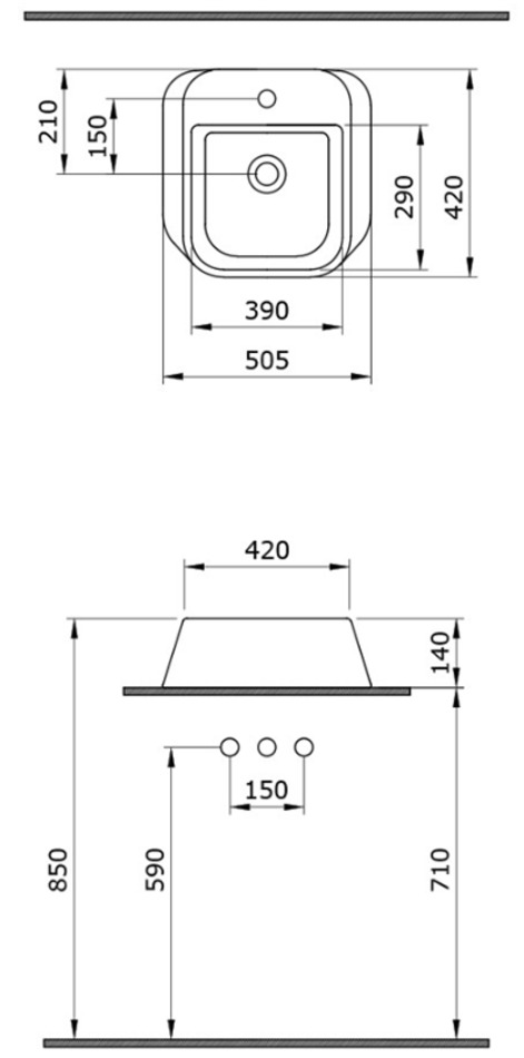 - Установка: накладная, установка только на столешницу