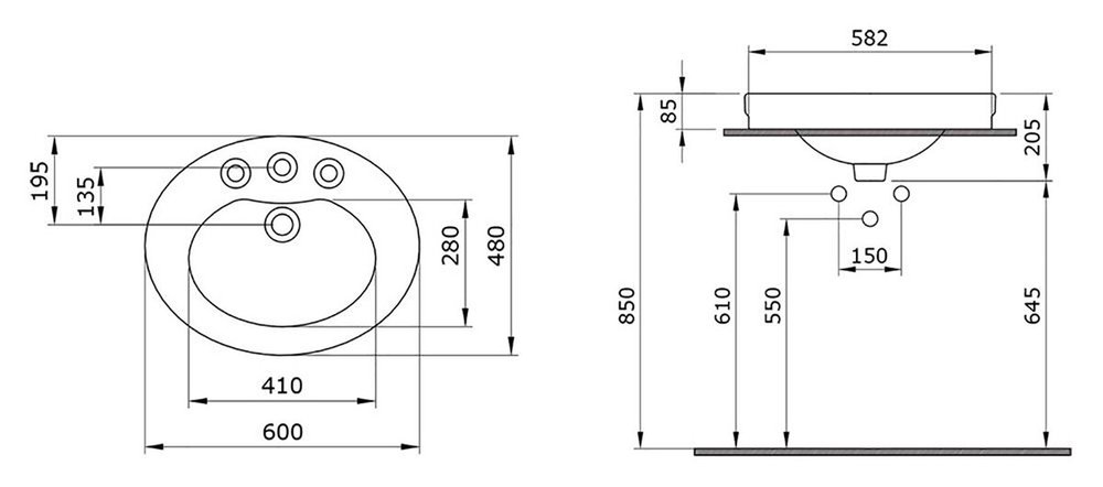Раковина Bocchi Loreto 1048-014-0126, 60 см, фарфор, кремовая