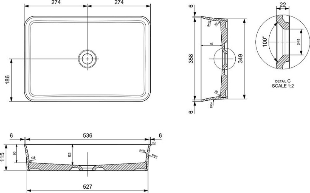 - Без отверстия под смеситель