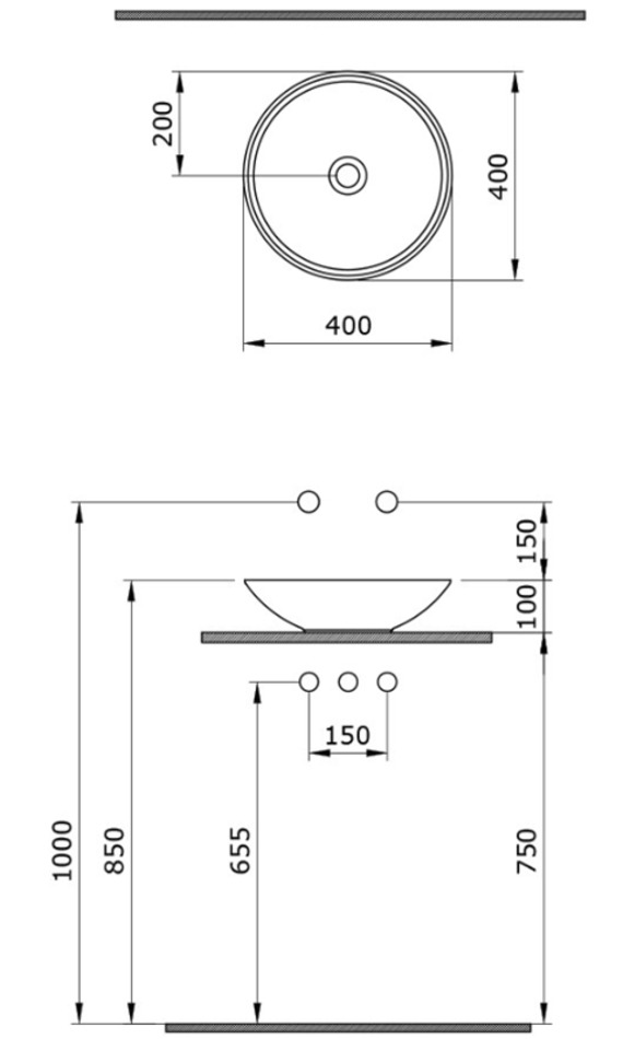 - Без отверстия под смеситель
