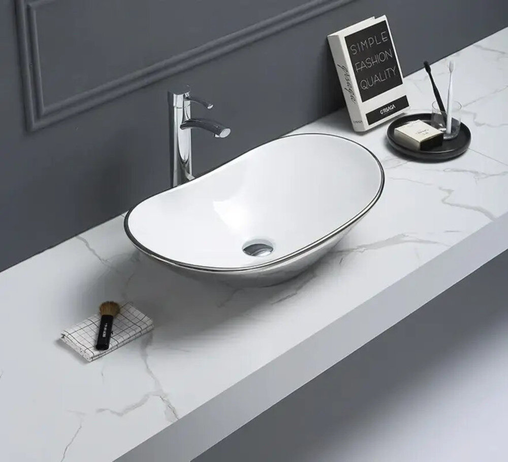 Раковина CeramaLux NC, 61.5 х 36 см, накладная, белая, хром, 7811ASW