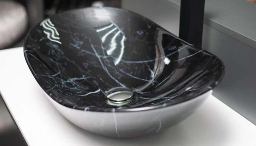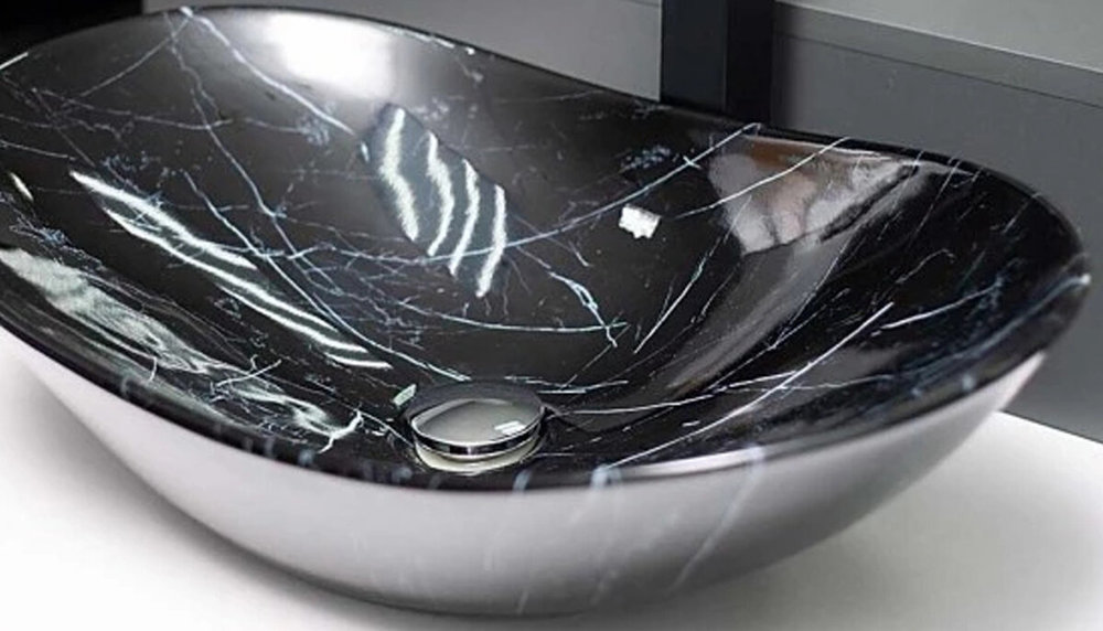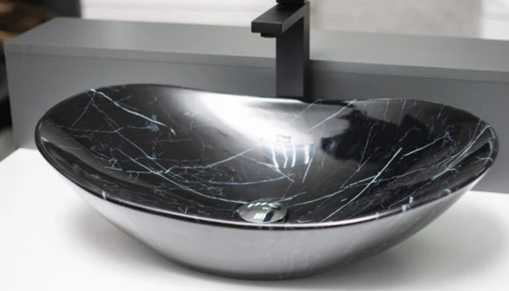 Раковина CeramaLux NC 7404BM 60.5 x 36 x 14 см накладная, округлая, черный мрамор