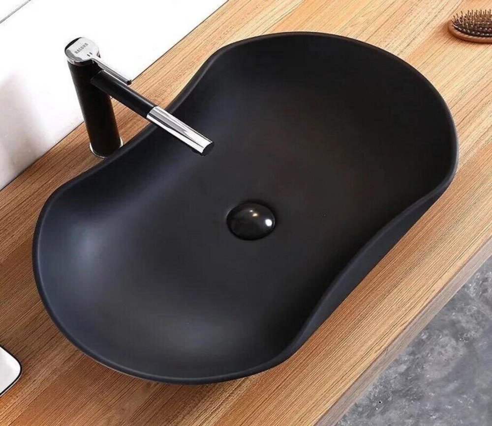 Раковина CeramaLux NС, 66 х 42 см, накладная, черная матовая, 9175MB