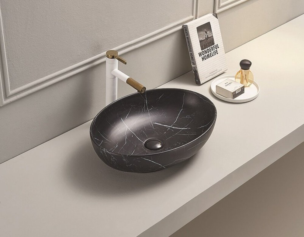 Раковина CeramaLux Серия MNC, 78166MBM, 51,5 х 38,5 см, накладная, с донным клапаном, цвет под камень