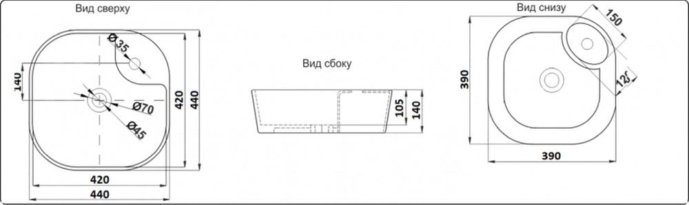 - Размеры (ШГВ): 44 х 44 х 7.5 см