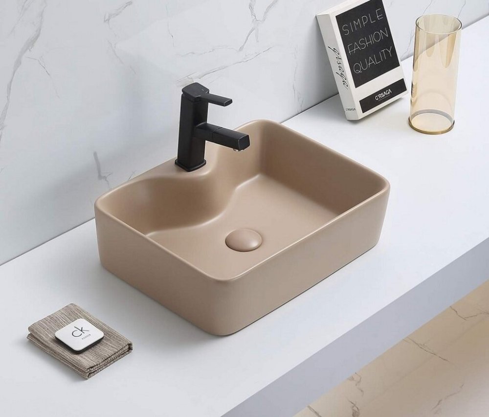 Раковина CeramaLux Серия NC, 7291MC-1, 48,5 х 37,5 см, накладная, с донным клапаном, цвет капучино матовый