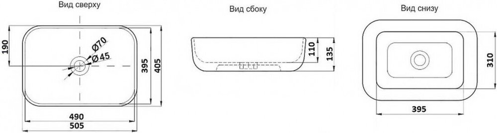 - Внутренние размеры чаши (ШГВ): 49 х 39.5 х 11 см