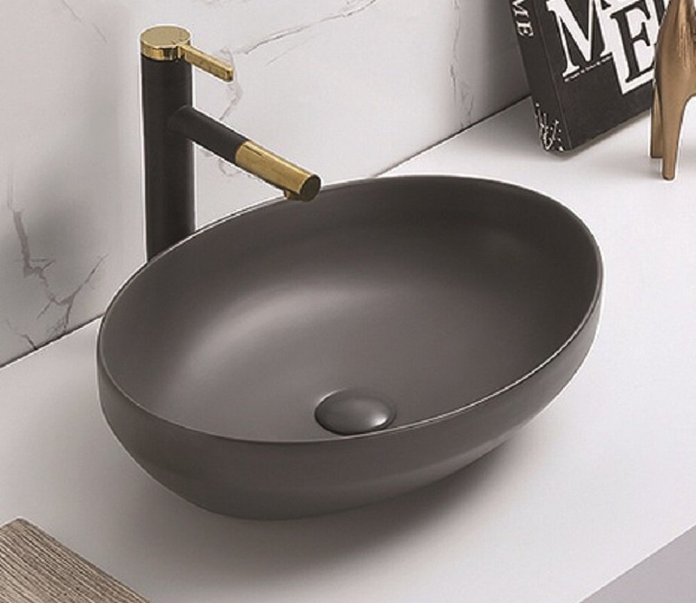 Раковина CeramaLux Серия NC, 78590MDH, 50,2 х 36,3 см, накладная, с донным клапаном, цвет серый матовый