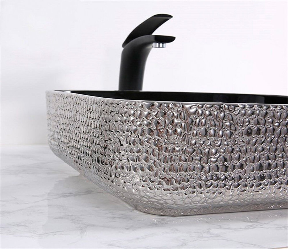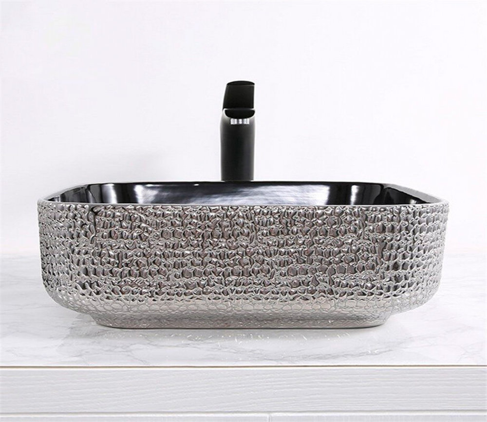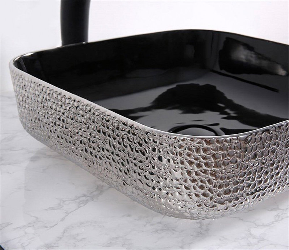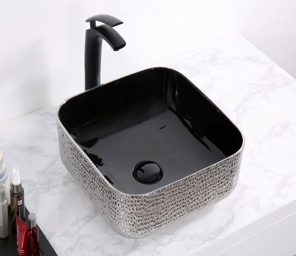 Раковина CeramaLux Серия NC D1303H020 накладная, черный/серебро