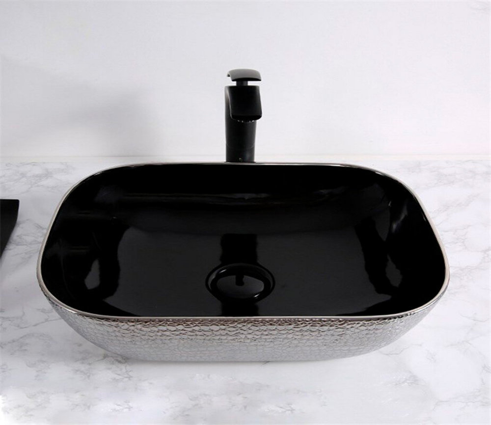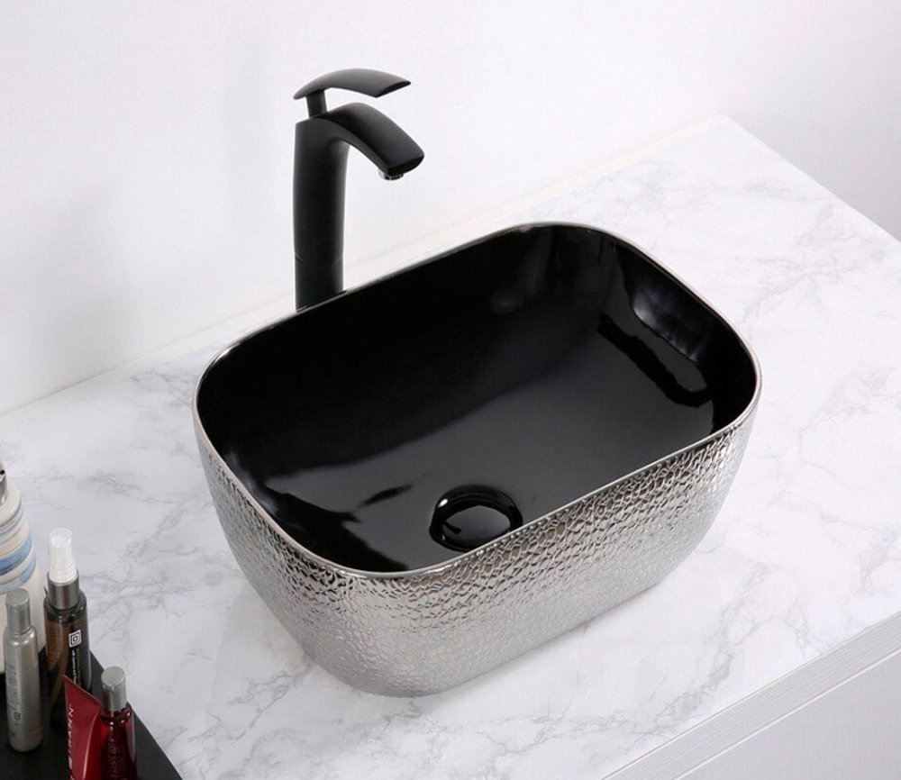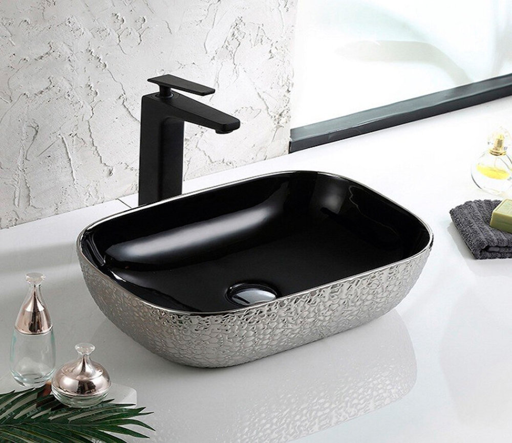 Раковина CeramaLux Серия NC D1333H020 накладная, черный/серебро