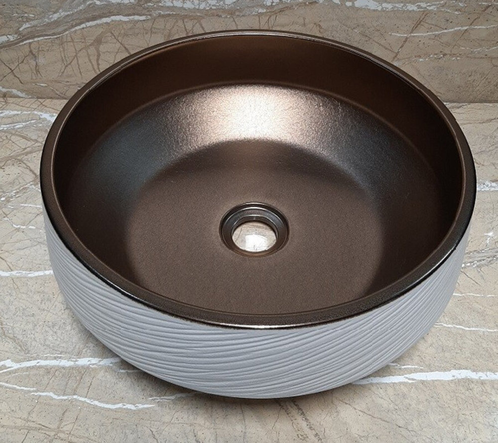 Раковина CeramaLux Серия NC J 2094 накладная, белый/коричневый