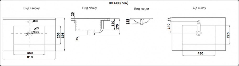 - Диаметр слива: 4.5 см