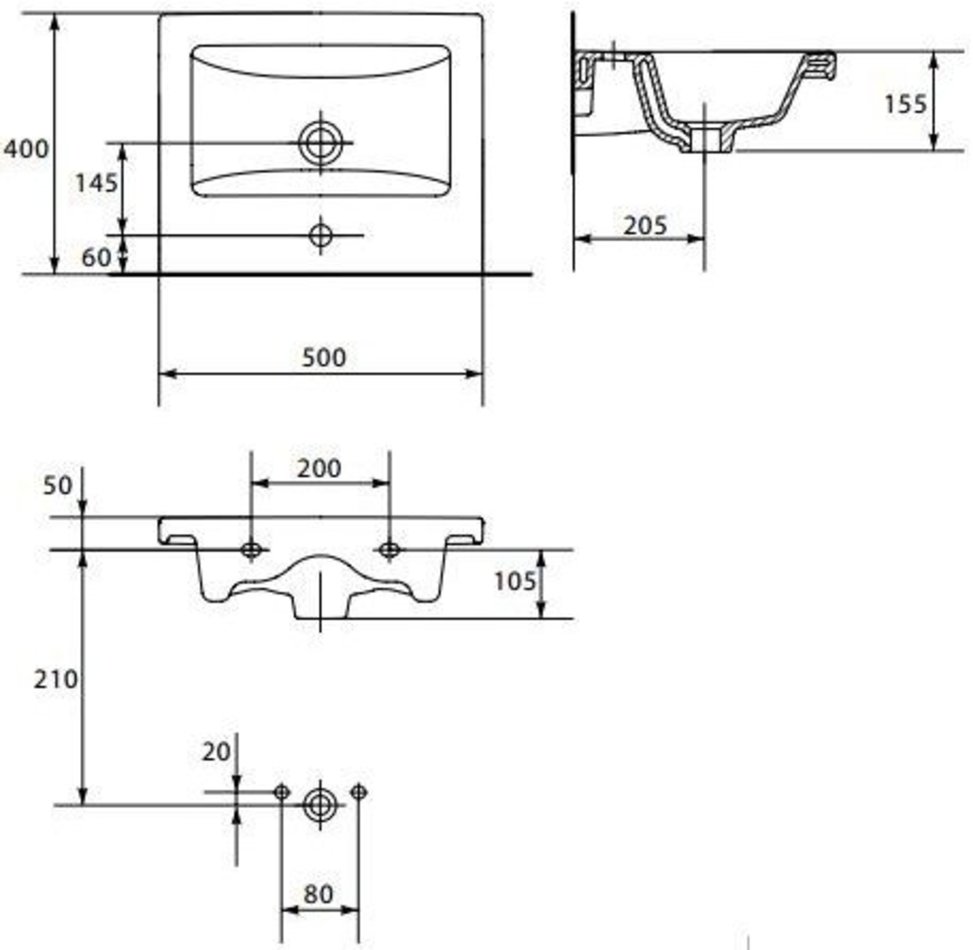 Раковина Cersanit Como S-UM-COM50/1-w, 50 см, накладная, белая