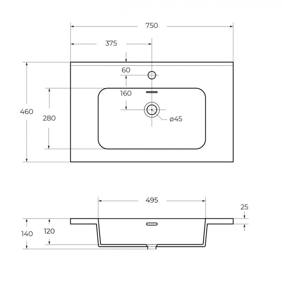 Раковина Cezares 50169, 75 см, искусственный камень, белый