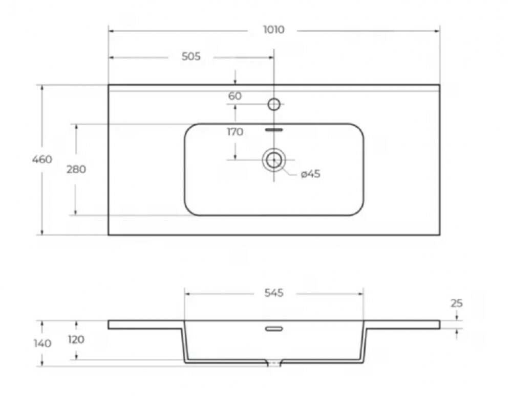 Раковина Cezares 50170, 100 см, искусственный камень, белый