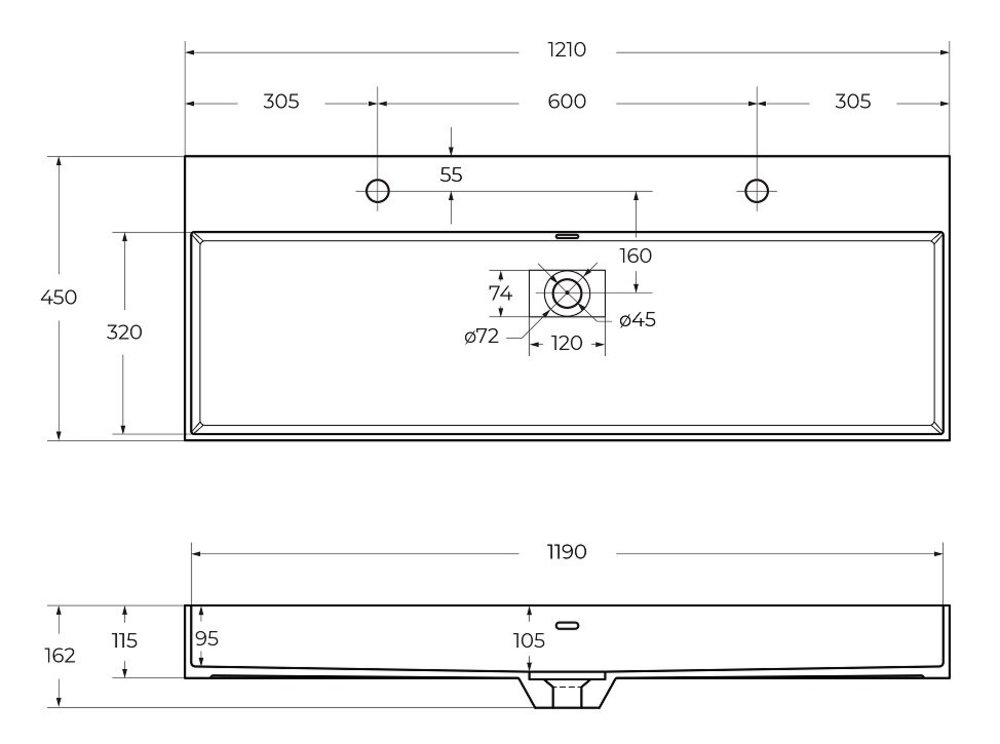 Раковина Cezares 50314, 121 см, искусственный камень, белый