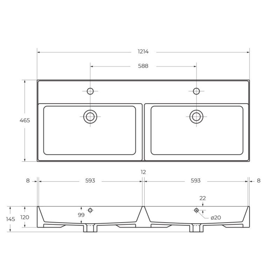 Раковина Cezares CZR-MIL-120-2-LVB, 120 см, керамика, двойная, белый
