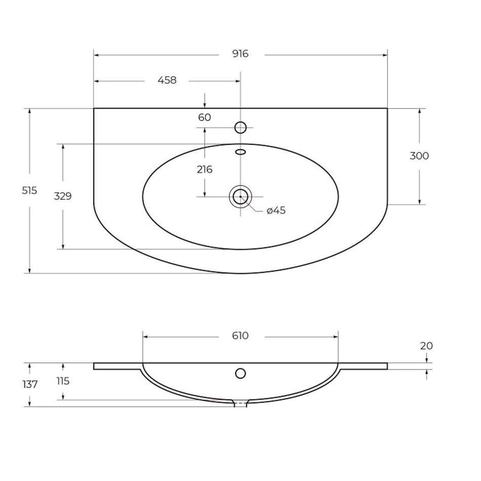 Раковина Cezares Eden 50177, 90 см, искусственный камень, белый