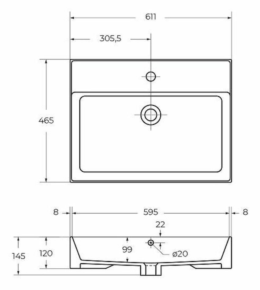Раковина Cezares Molveno 46 CZR-MIL-60-LVB, 60 см, керамика, белый