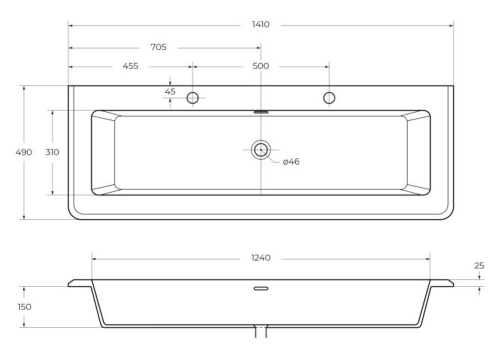 Раковина Cezares Solid Surface 50265, 140 см, искусственный камень, белый