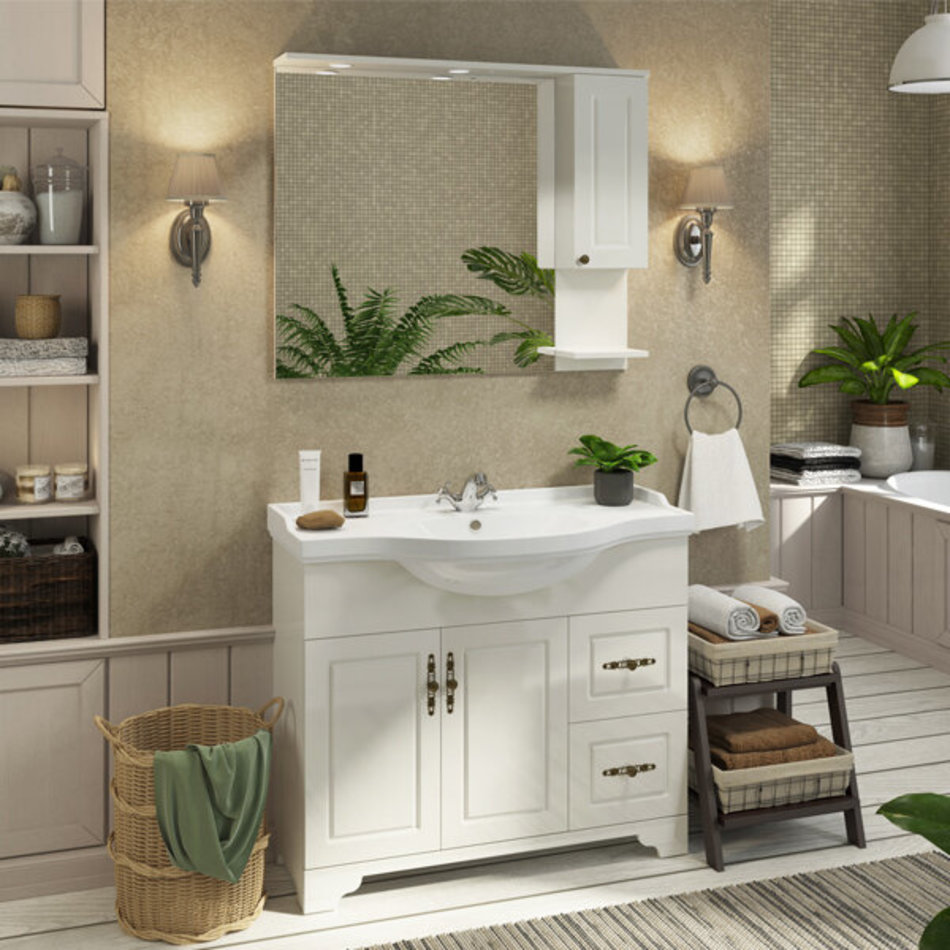 - Назначение: широкая мебельная раковина для установки на тумбу.