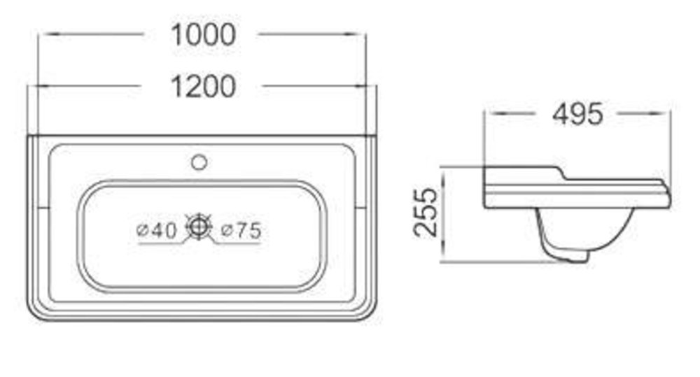 - Габаритные размеры (ШхВхГ): 1200 х 255 х 495 мм