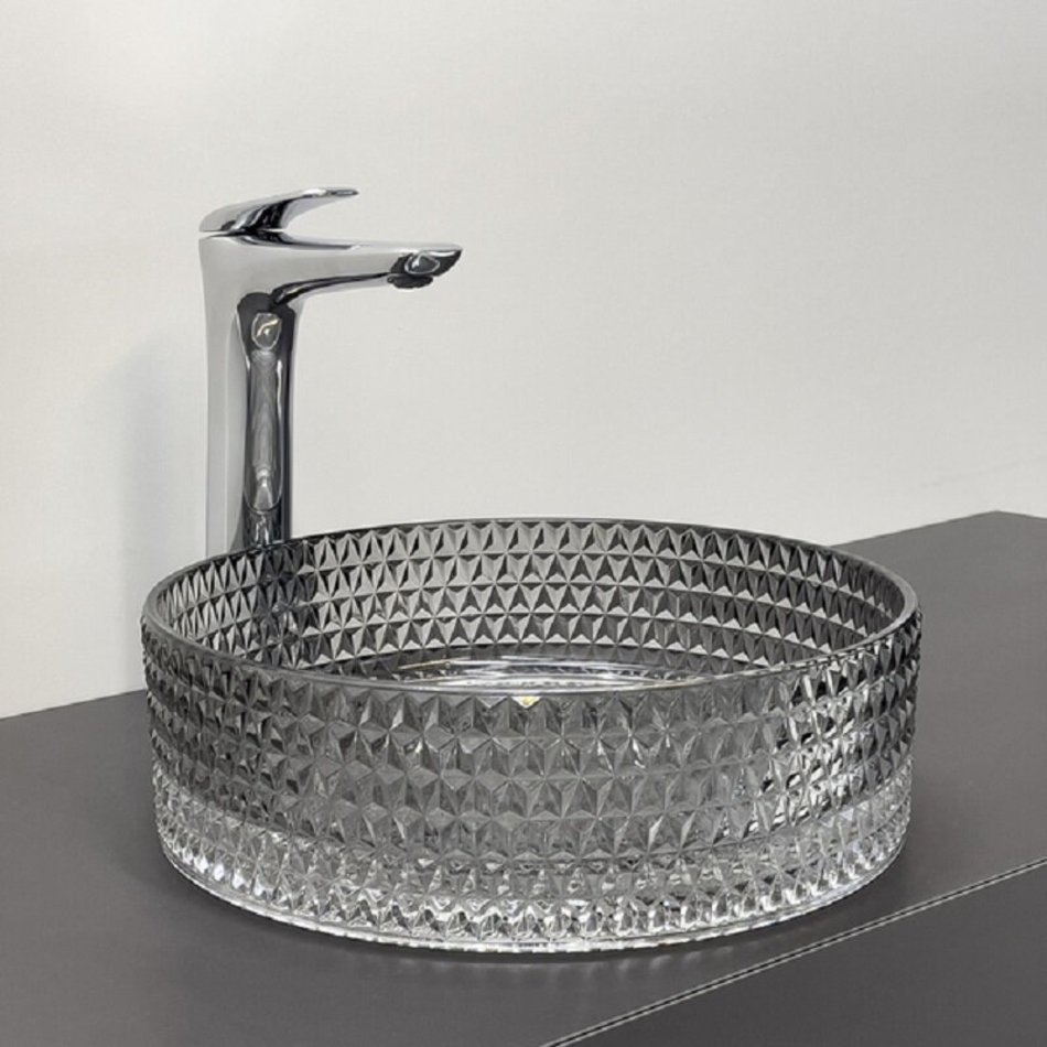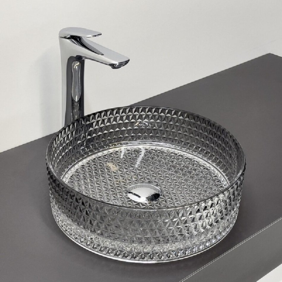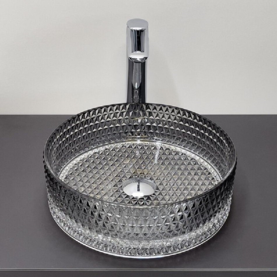 Мебельный умывальник из тонированного прозрачного закаленного стекла для установки на тумбу или столешницу.