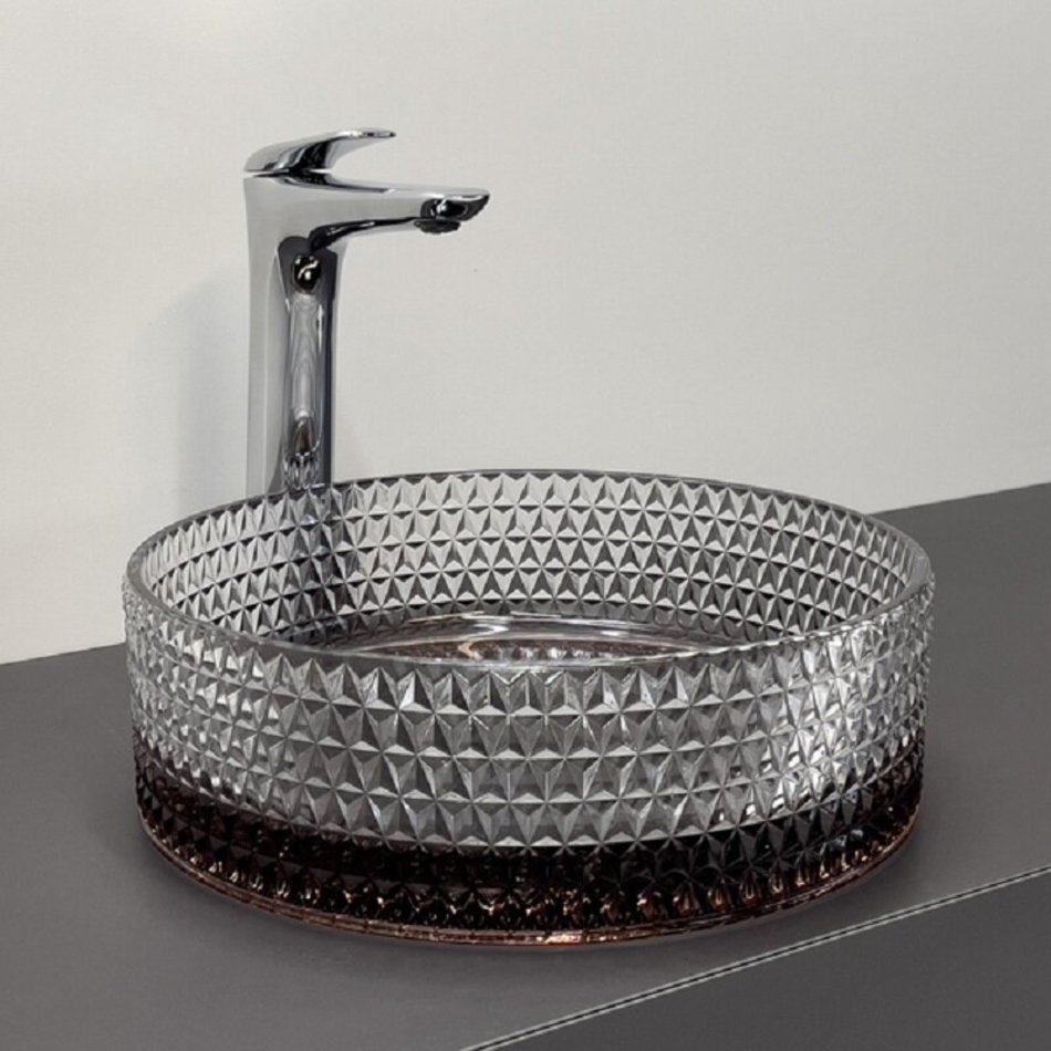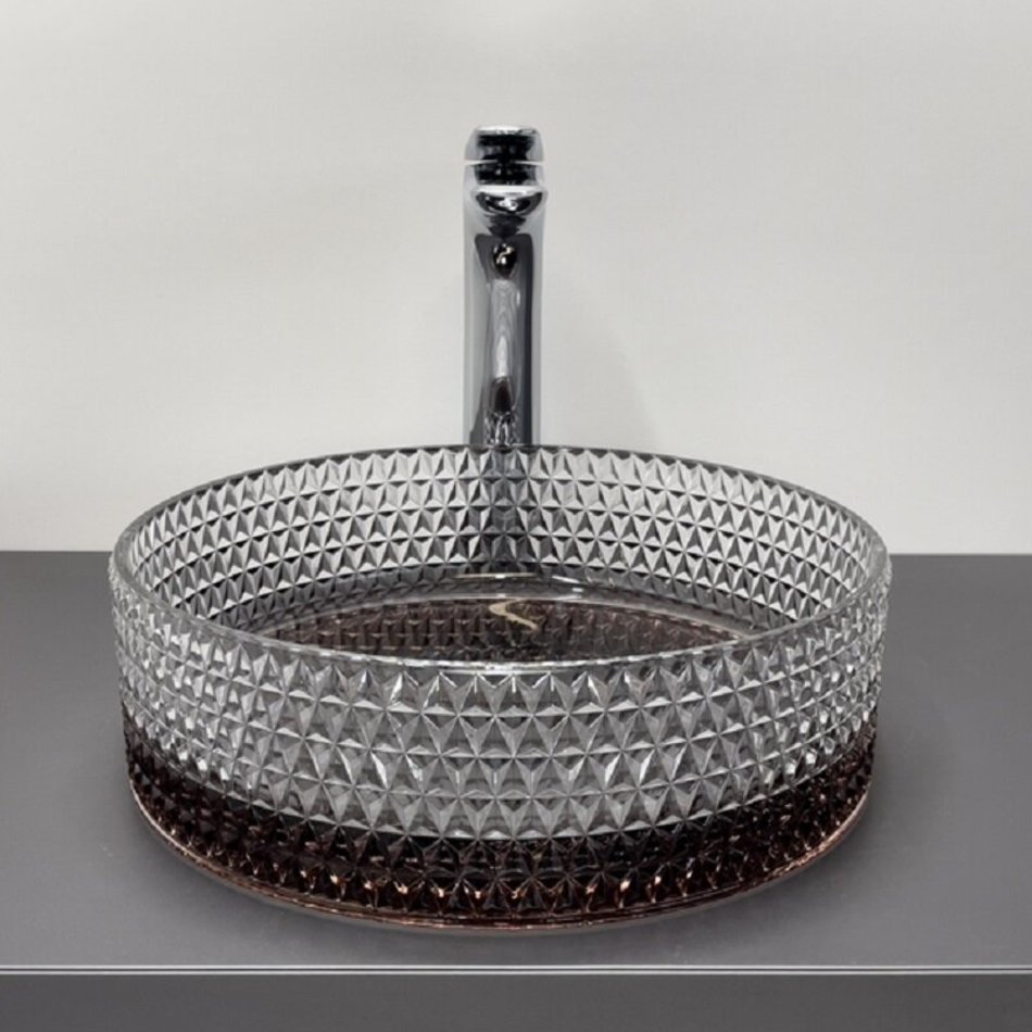 Мебельный умывальник из тонированного прозрачного закаленного стекла для установки на тумбу или столешницу.