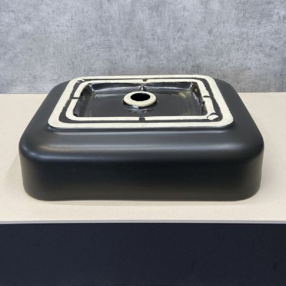 Накладная раковина для ванной с прямоугольной чашей для установки на мебель или столешницу. Изготовлена из высококачественного фарфора. Без отверстия под смеситель. Без переливного отверстия. Для комплектации с отдельностоящим смесителем. Смеситель устанавливается прямо на столешницу.Донный клапан и сифон приобретаются отдельно. Диаметр сливного отверстия 45 мм. Для данной раковины подойдет донный клапан для раковин без перелива DK-01MB