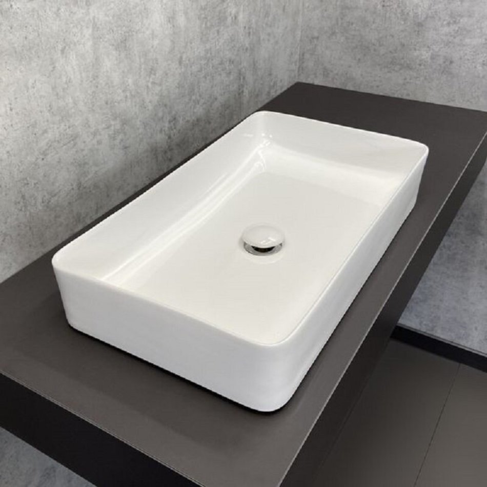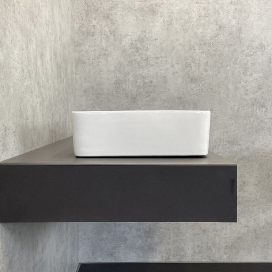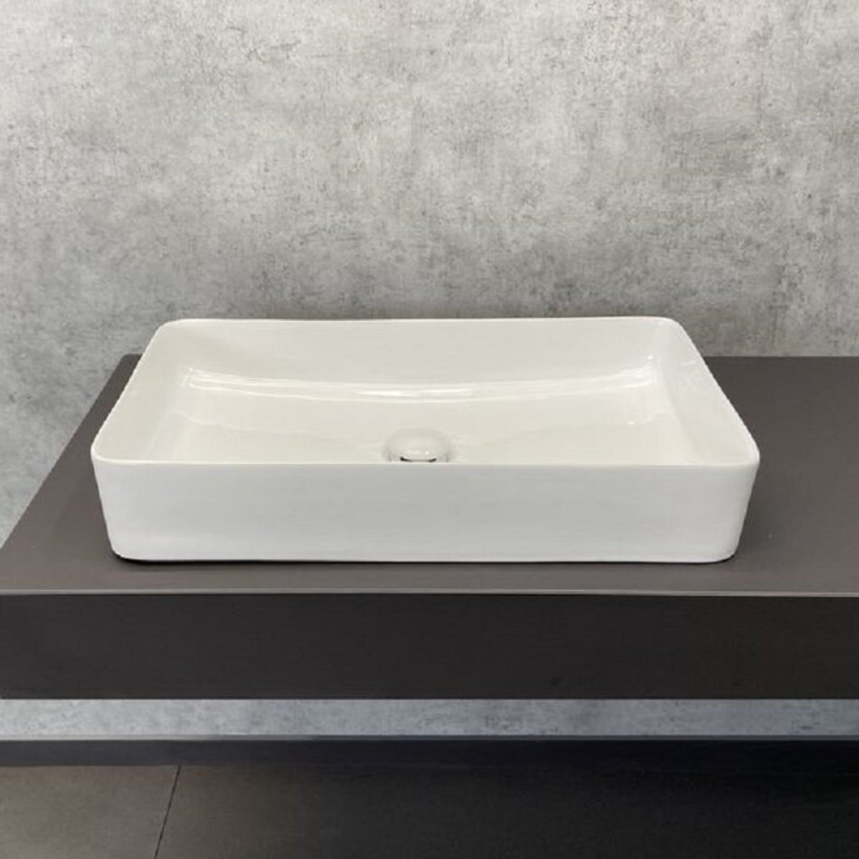 - Назначение: прямоугольный мебельный умывальник для установки на тумбу или столешницу.