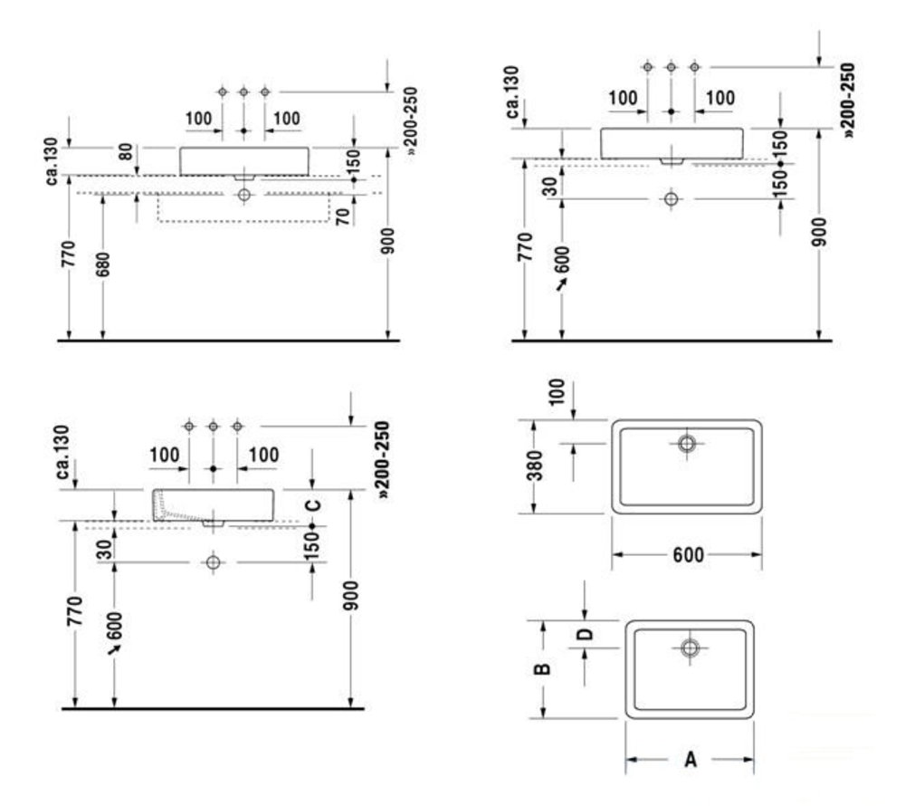 Раковина Duravit Vero 0455600000, без площадки под смеситель, 60 х 38 см