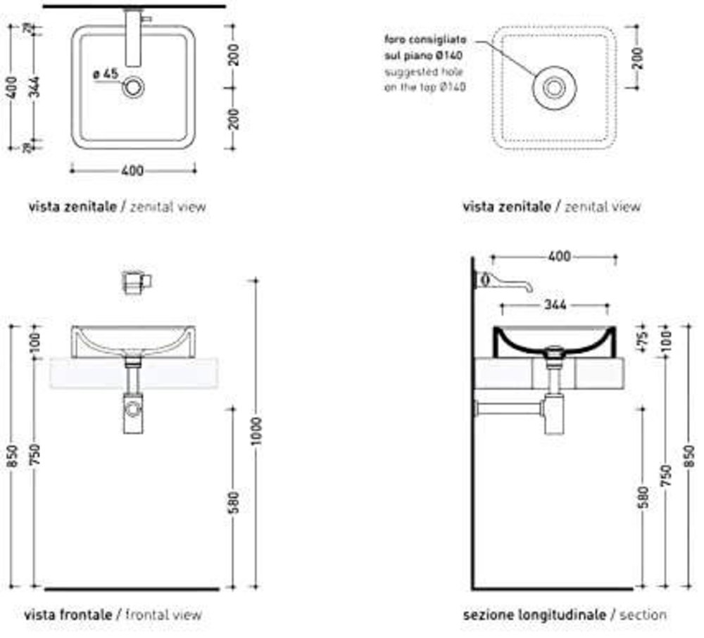 - Без отверстия под смеситель